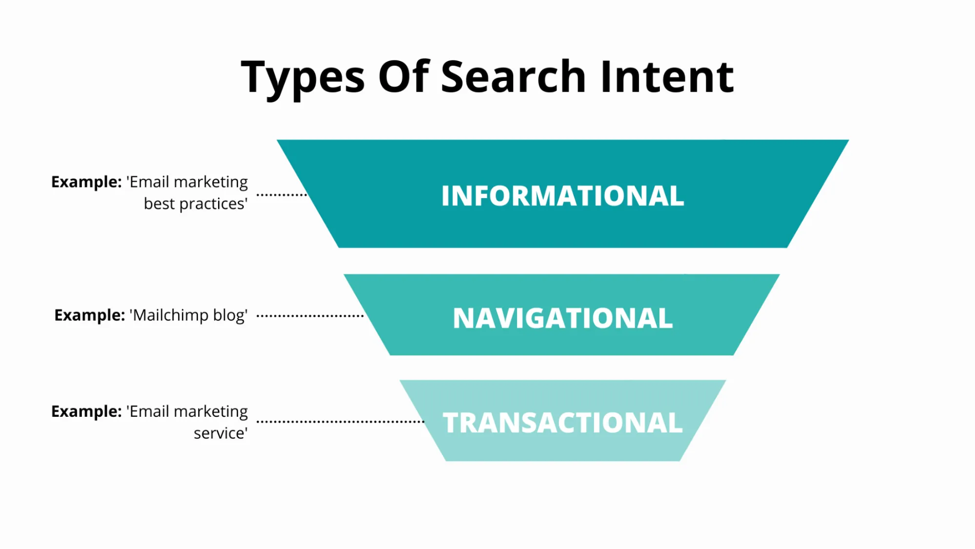 Search intent defines the purpose of a user’s search. Every query entered into the search box carries one of the following types of search intent: