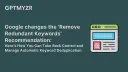 What was Google’s announcement on the “Remove Redundant Keywords Recommendation”?