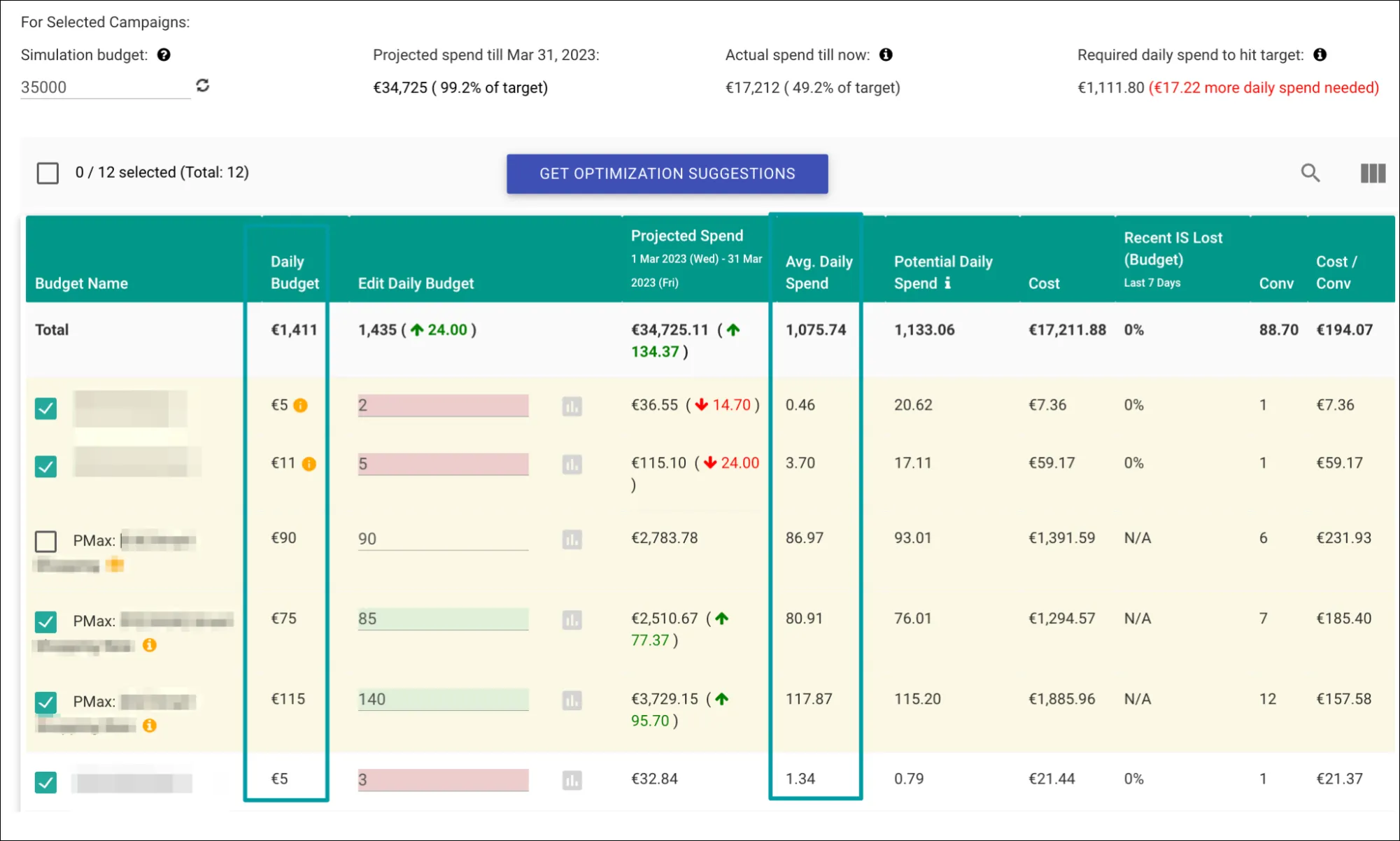If you have set rules or settings to manage the budgets, you can automate this process in Optmyzr.