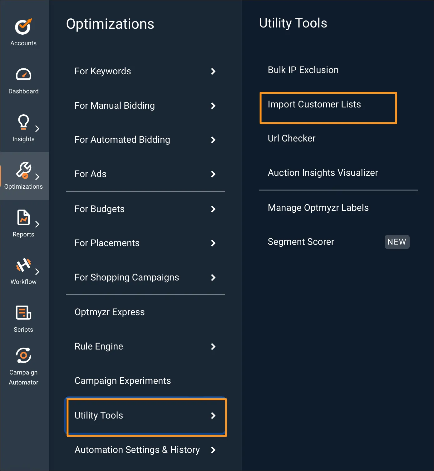 You can create Customer list segments using Import Customer Lists feature in Optmyzr.