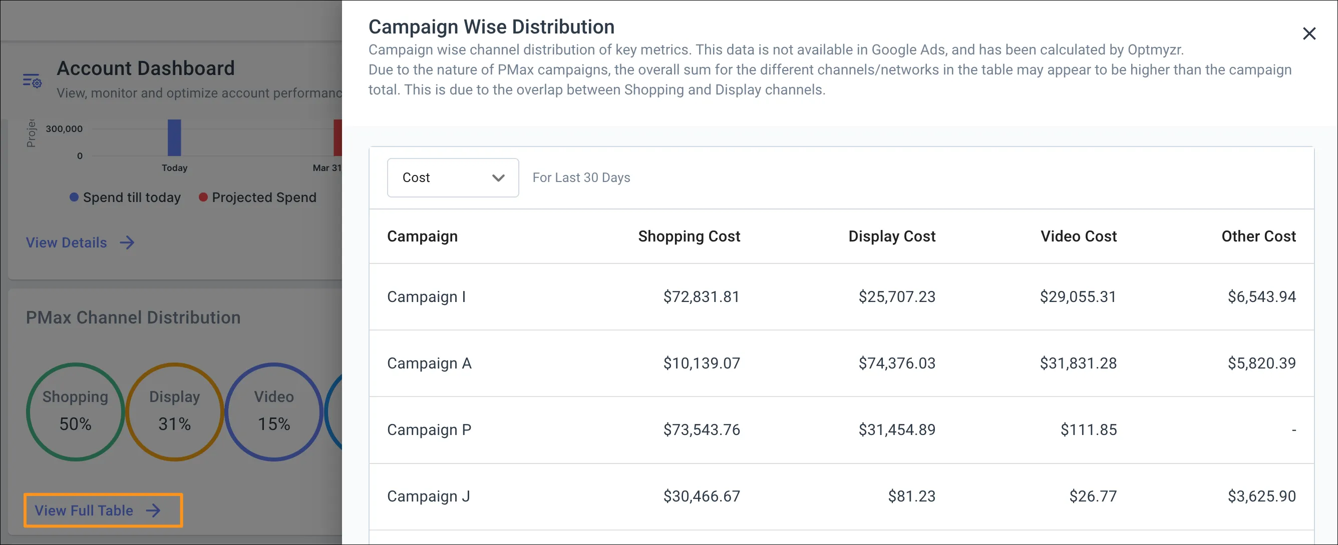 You can also further drill down to see this performance classification for each campaign. It is called the Performance Max Channel Distribution widget.