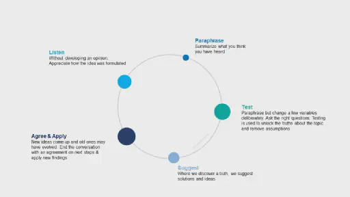 At the end of the conversation, ideas may have shifted, and new concepts evolved. End the conversation with an agreement. The agreement is now in place, so apply any new findings immediately.