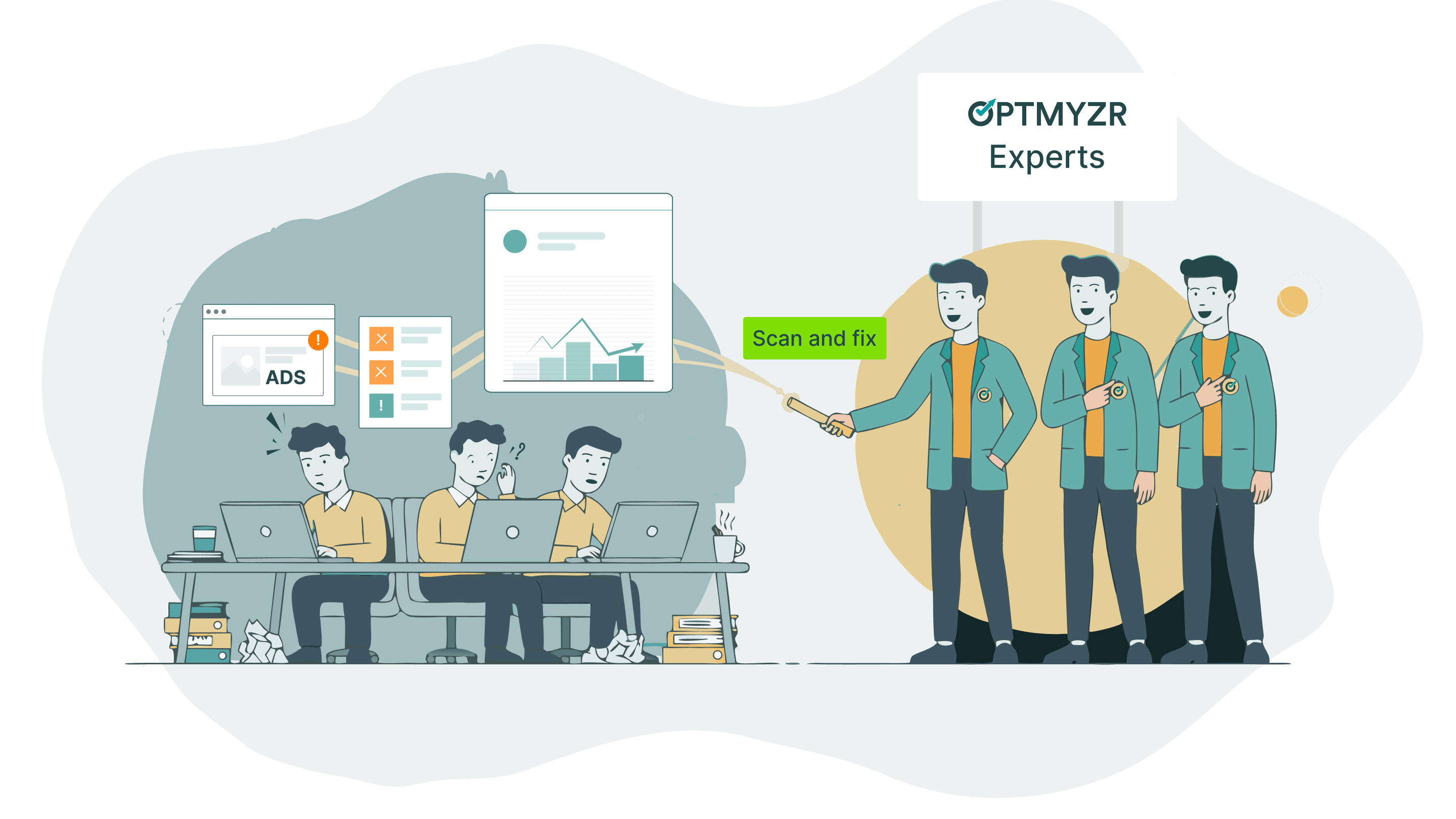 Your clients benefit from a strategy executed by humans and powered by Optmyzr’s automation, optimizing bids, budgets, and creatives 24/7.